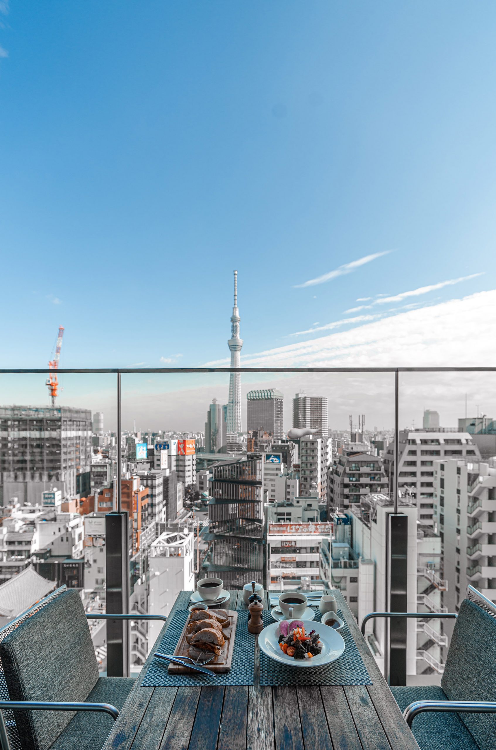 ご宿泊者のみご利用いただける最上階のルーフトップテラスでは眼下には浅草の街並みを、目の前には東京スカイツリー®と、新旧の東京の景色をお楽しみいただける宿泊者専用のプレミアムエリアです。